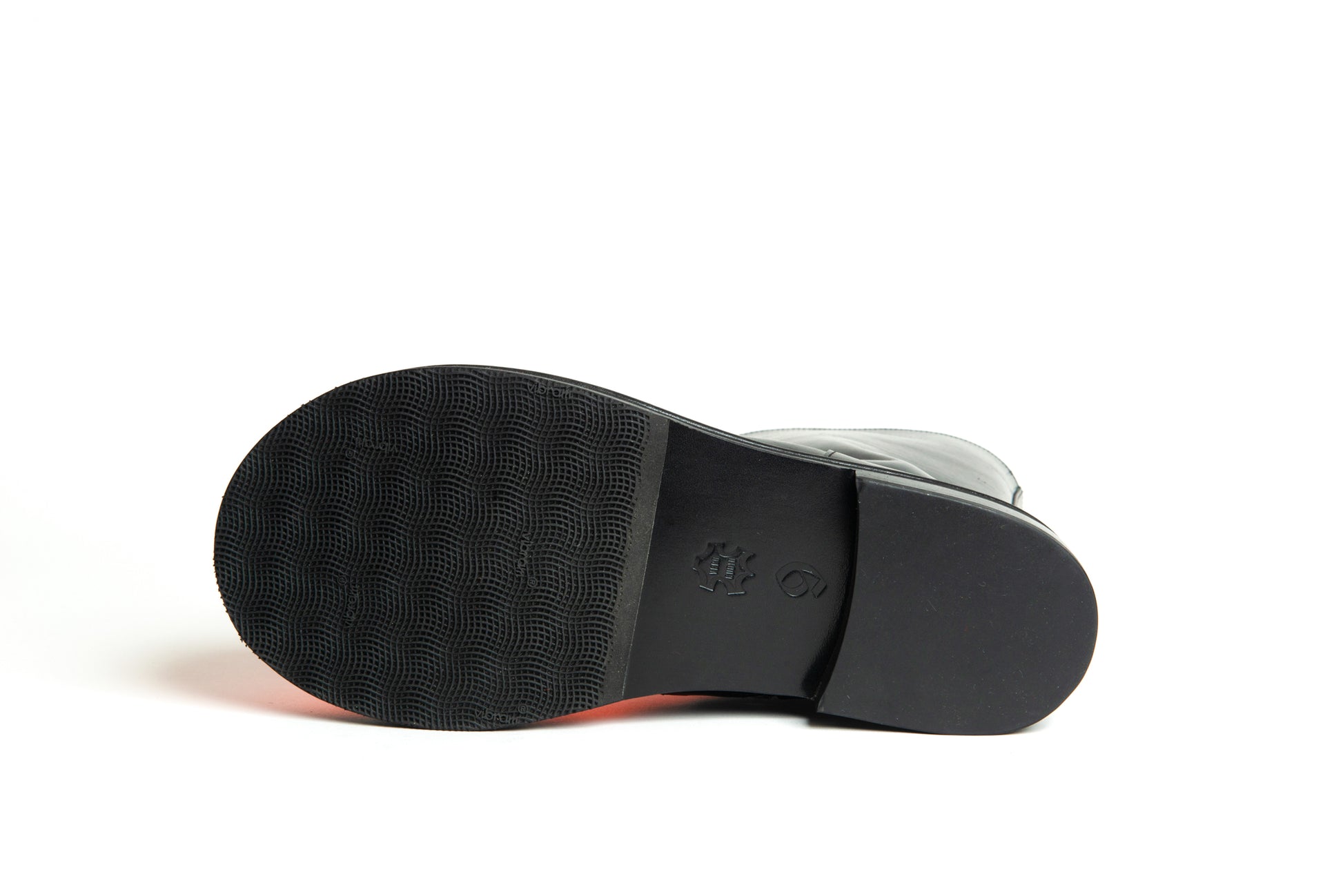 劣化しにくい国産ベンズ(革を圧縮したもの)+合成ゴム半貼り。中板にEVスポンジを使用し、歩行時のクッション性と湾曲をサポート。