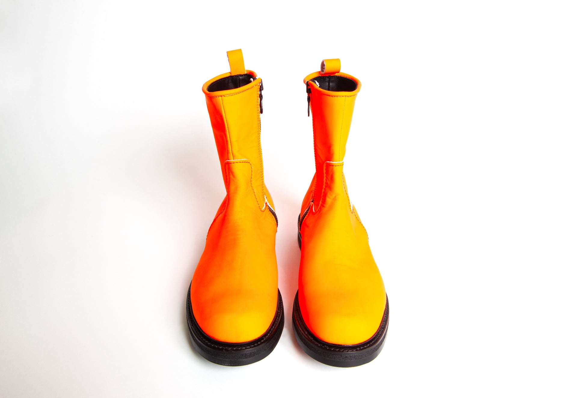 継続的にリリースされているサイドジップブーツのアップデートモデル。 素材・ディテールを変更しながらリリースしていたサイドジップブーツを大幅にアップデート。 爪先のキャップトゥディテールを排し、存在感のある厚手のアッパー素材と抜群に相性の良いボリューム感を意識したレザーソールを採用。 よりオーセンティックな趣に生まれ変わった 1 足に鈍い光沢感のシルバーのファスナーが良く似合う。カカト部にオリジナルサイズ刻印。