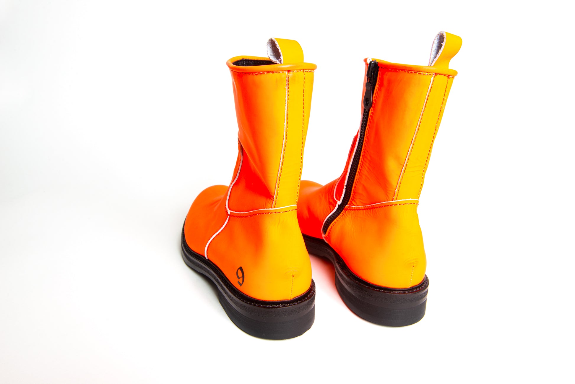 "A boot to protect Dave Baby's feet from broken glass bottles as he creates art pieces in his chaotic, messy room."