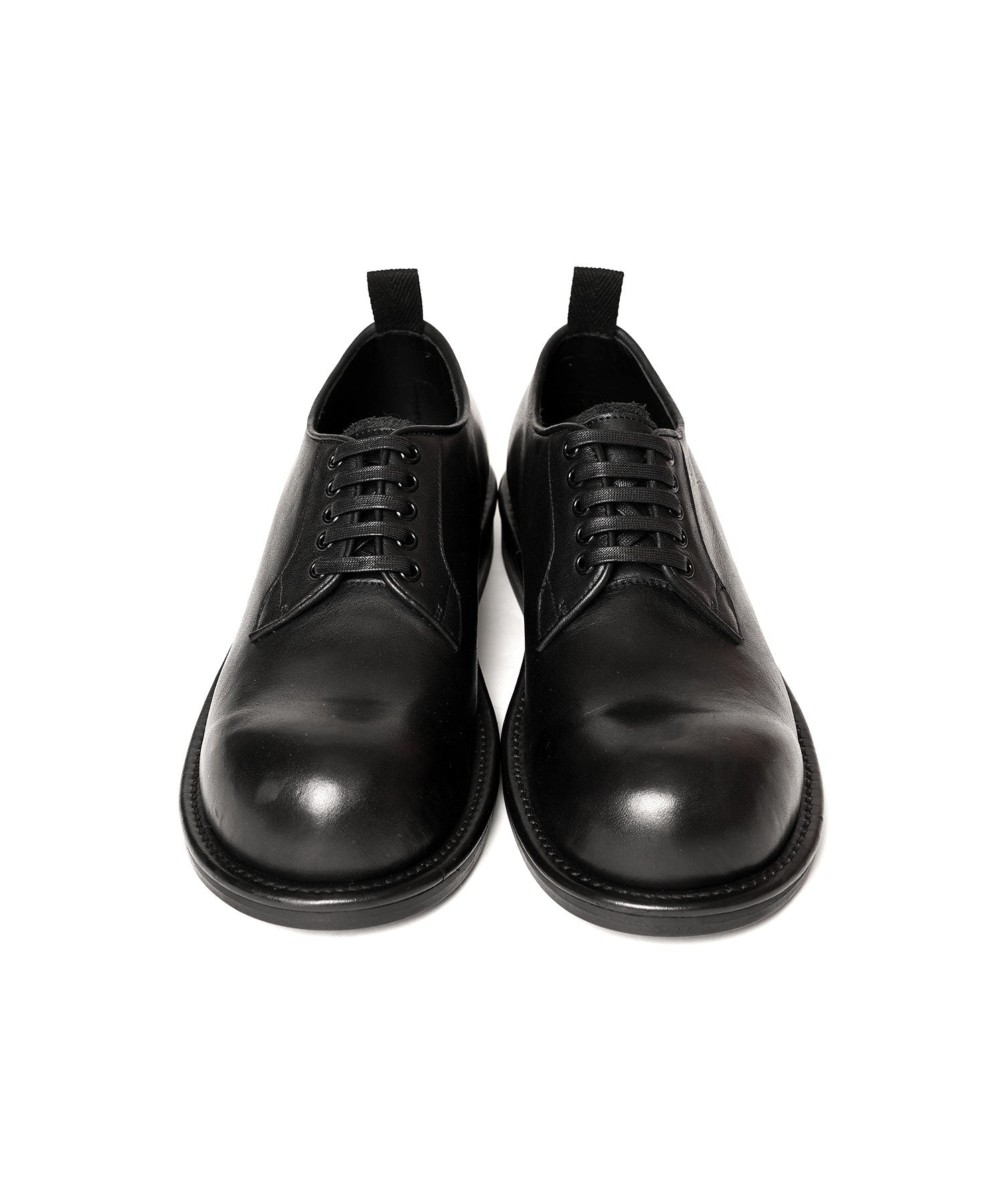 ミリタリーミッキーブーツからインスパイアされた木型を使用したシンプルな外羽根シューズ。