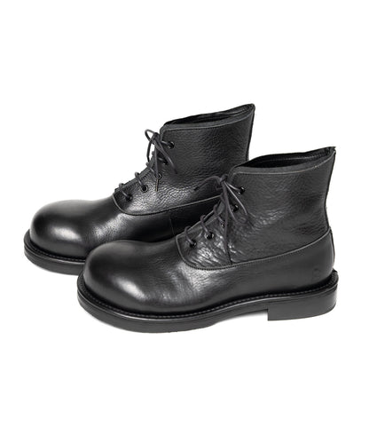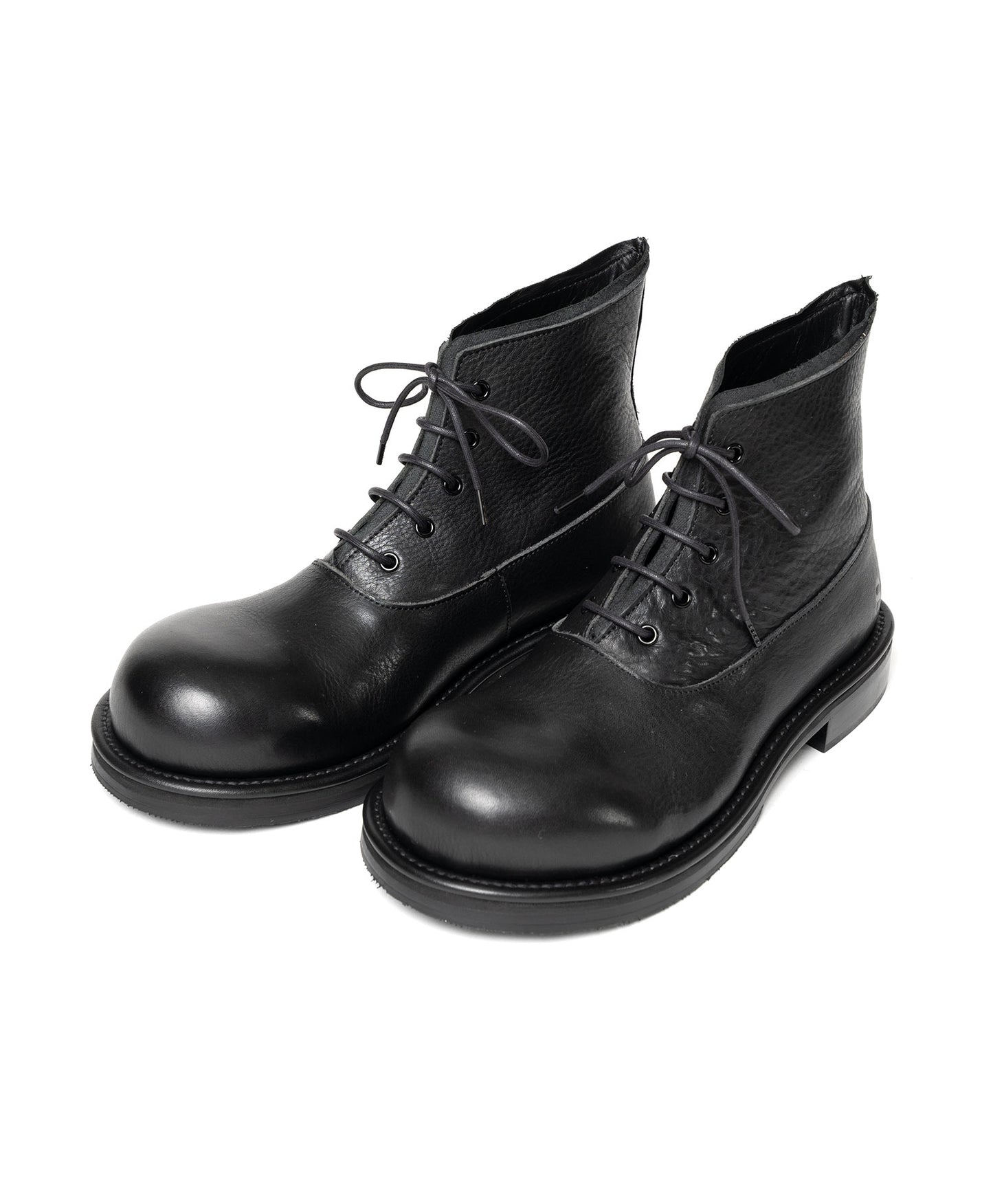 Clyde同様に今期新たに開発した木型を使用した新モデル。シンプルな内羽根ブーツとすることで、独特な木型のラインが強調されている。デフォルメされたような丸っこいラインと実用的な履き心地を両立するのに苦労を要した、渾身の新木型。シャープな筒ラインによりホールド感を高め、快適な履き心地を実現。羽根周りのさらい残しと、踵に向かって斜めにカットされた筒のラインがデザインアクセントに。さらい残しのディテールは足あたりを柔らかくする意味も兼ねている。また、中敷き下に配したクッション材もフィット感の向上を手助けすると同時に歩行時のクッション性も高めている。