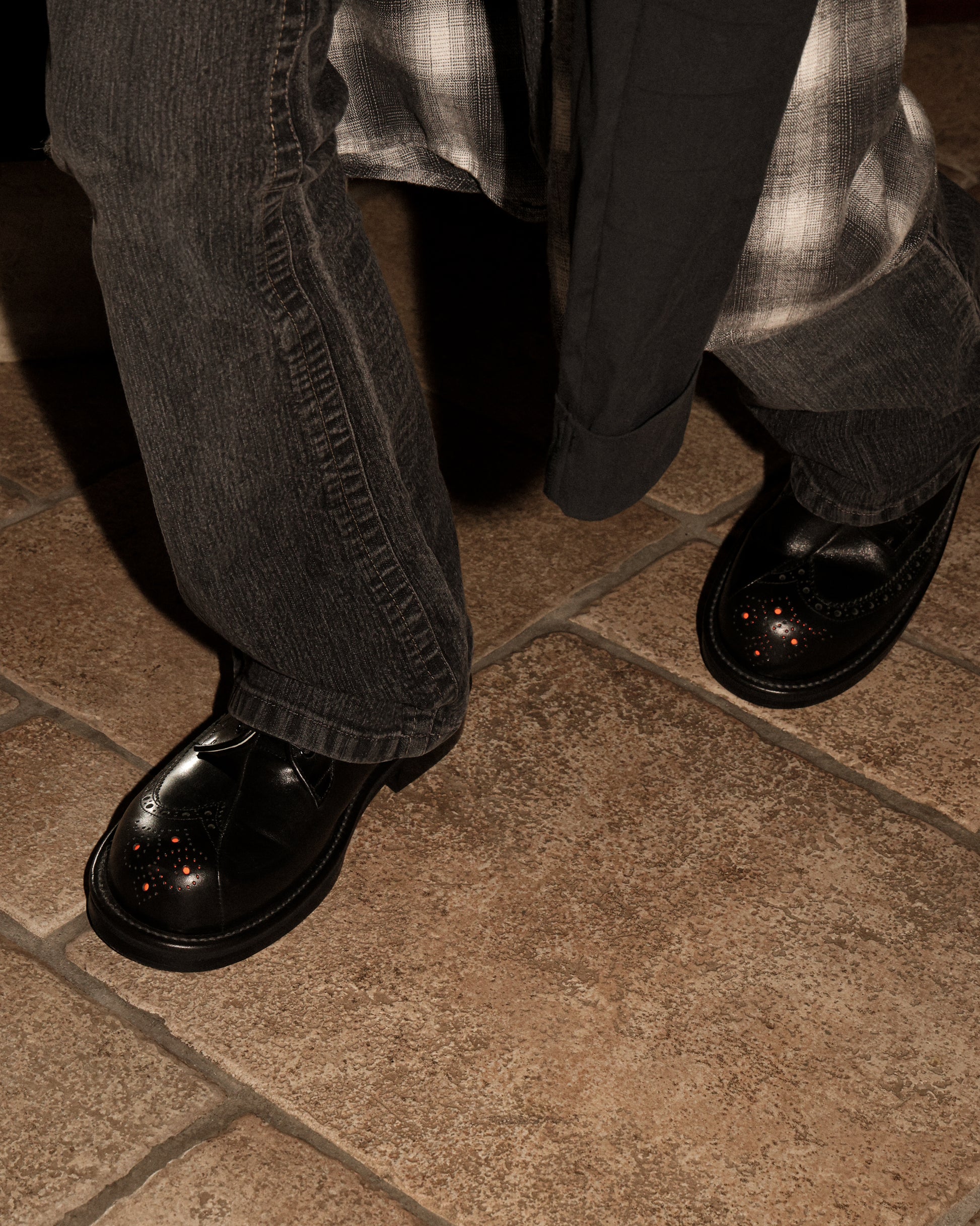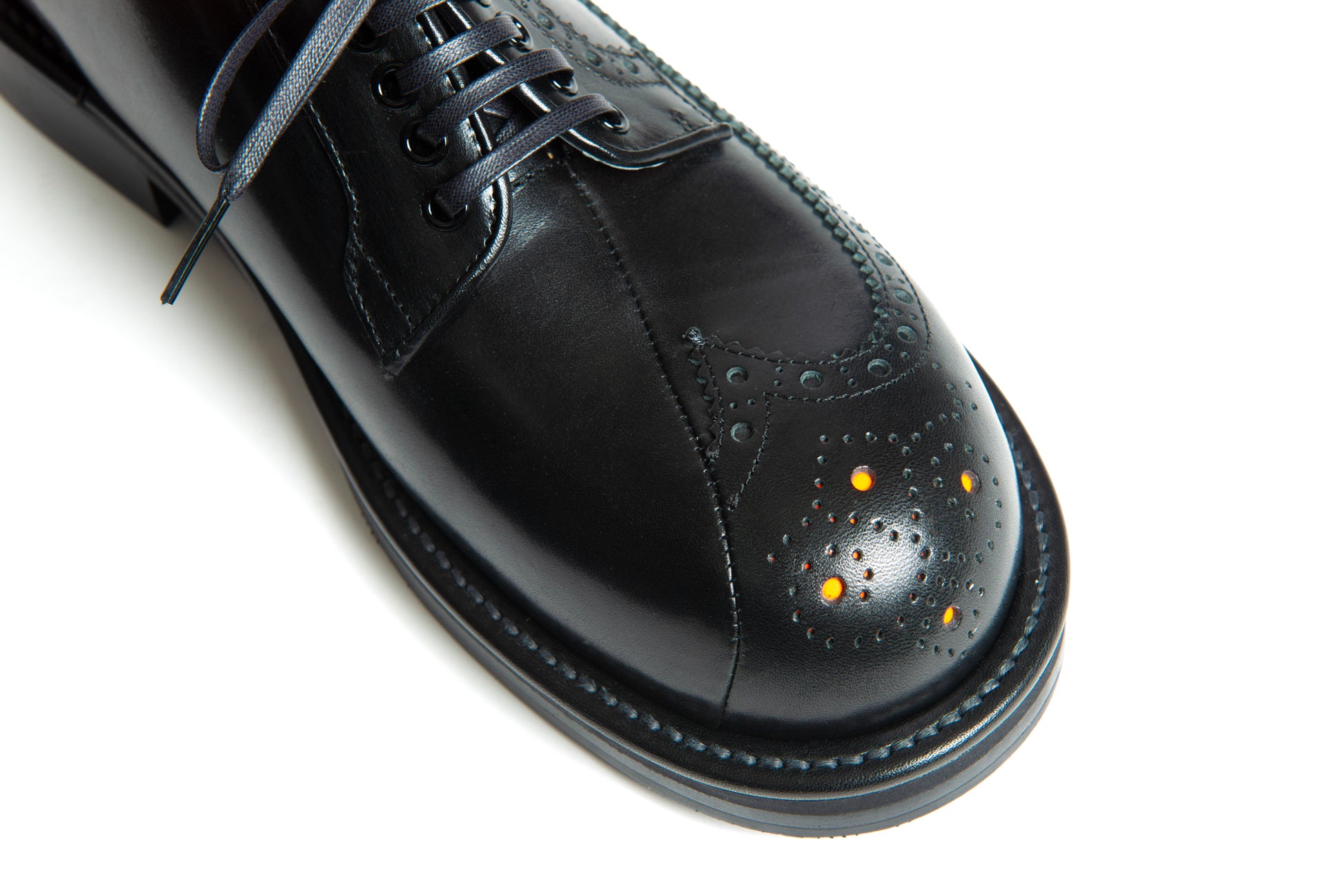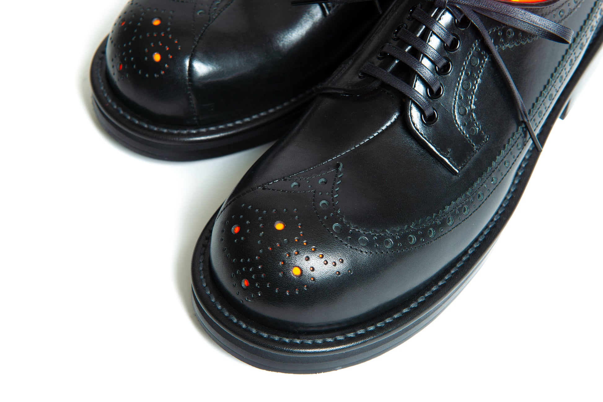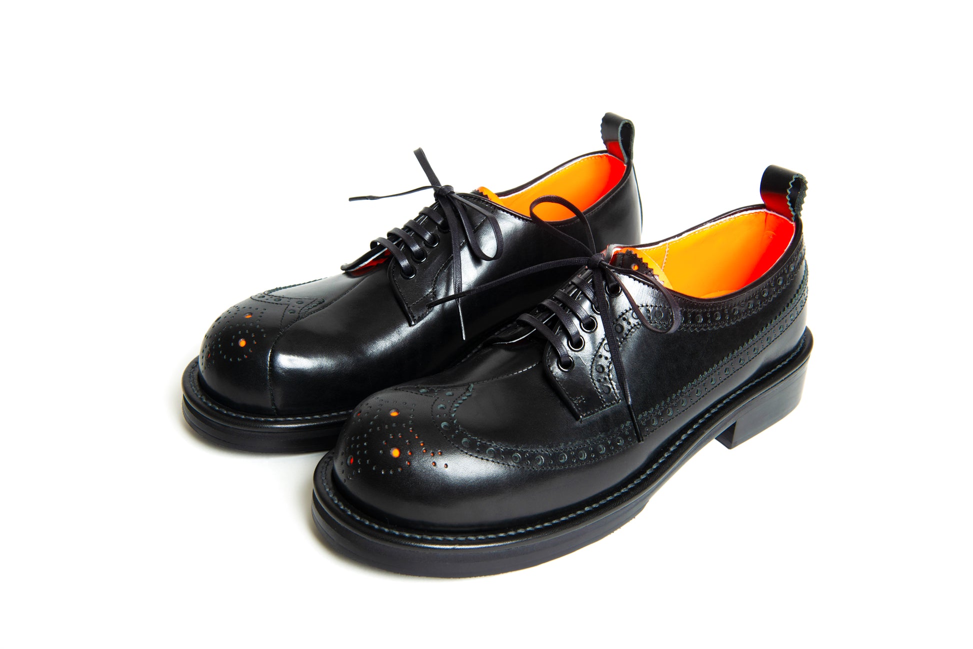 ウィングチップとプレーントゥを融合させた大胆なデザイン。内側と外側で異なる表情を持ち、光と影、静と動を縫い合わせた一足です。
